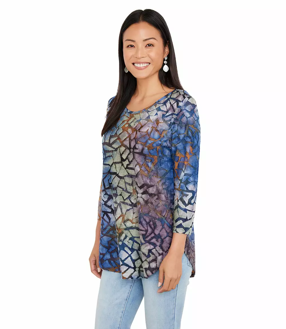 Karen Kane Tie-Dye Burnout Shirttail Top