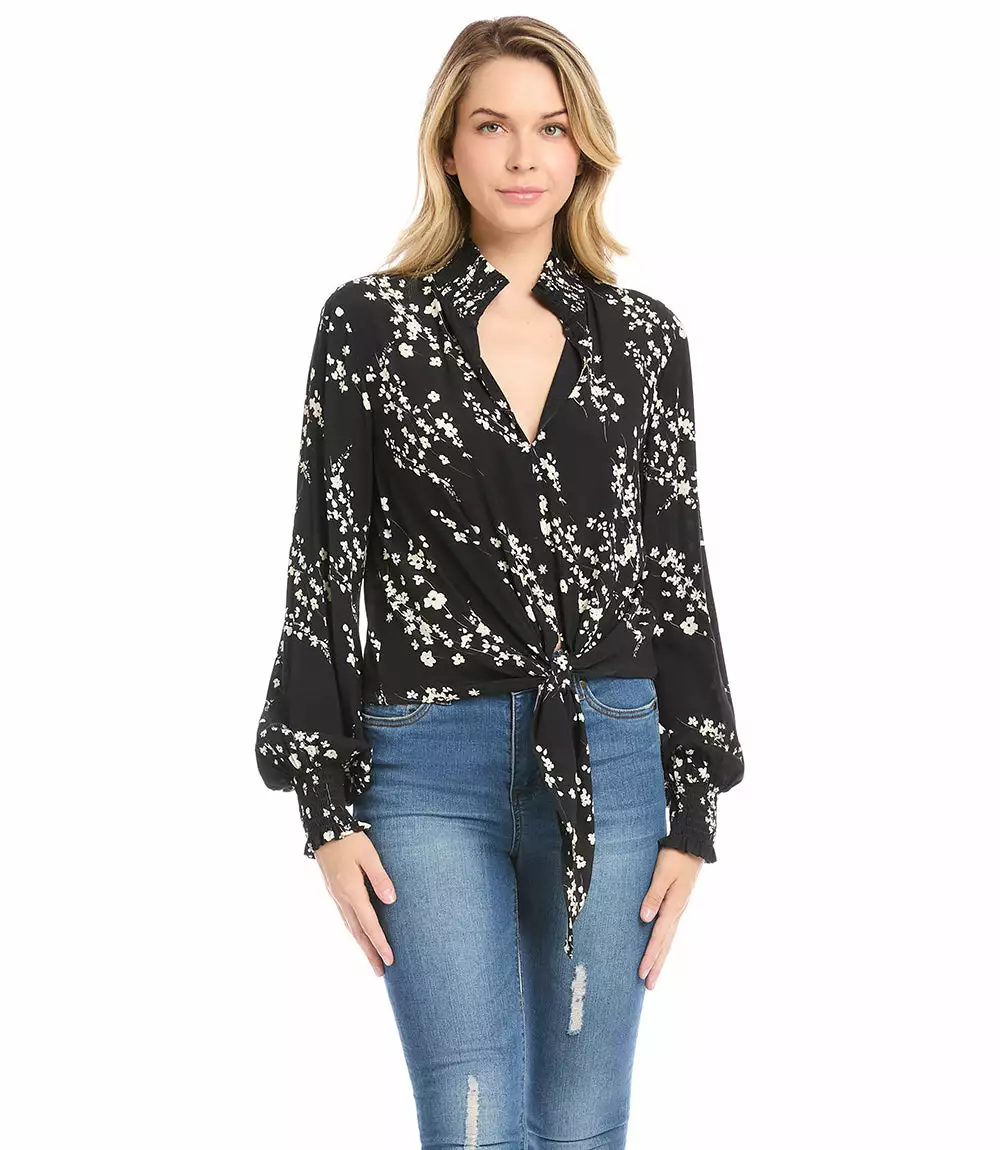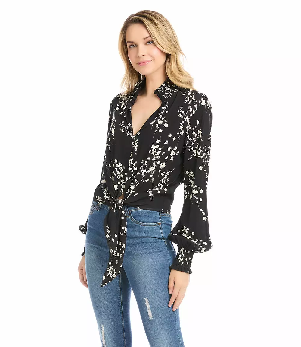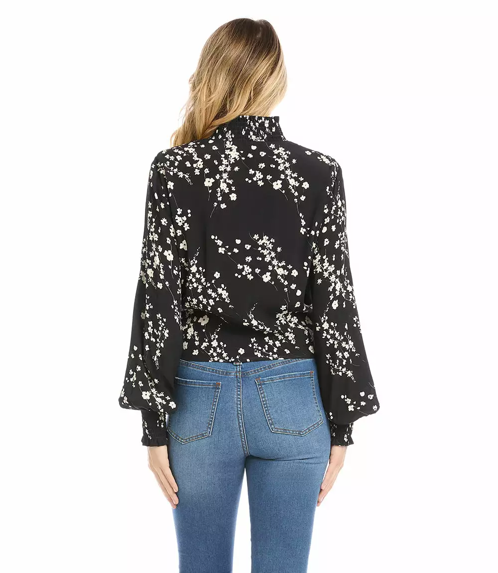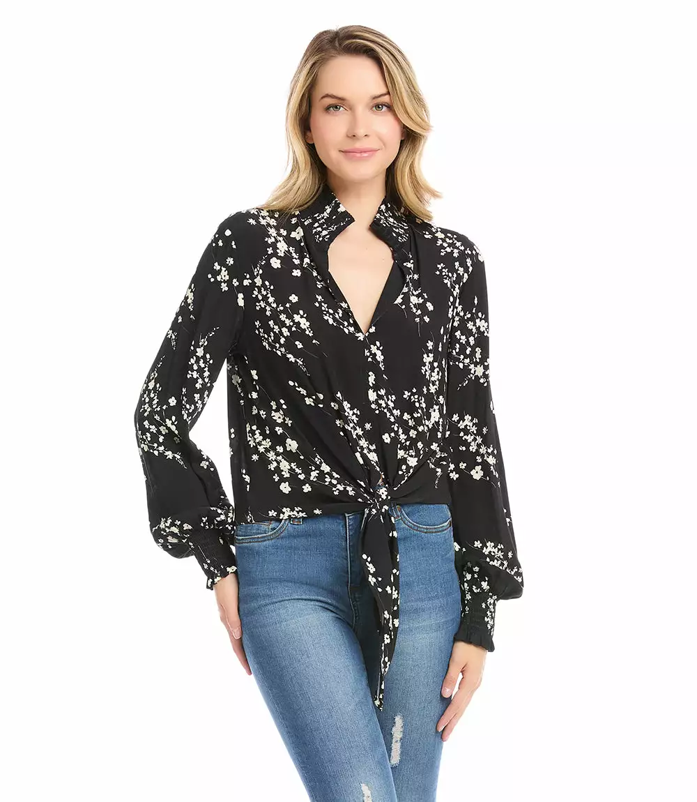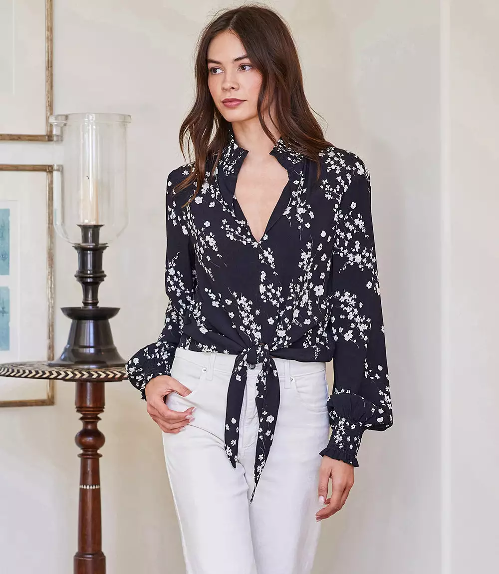 Add a dash of old-world romance to your wardrobe with smocked sleeves and collar. It’s finished with a stylish tie-front.