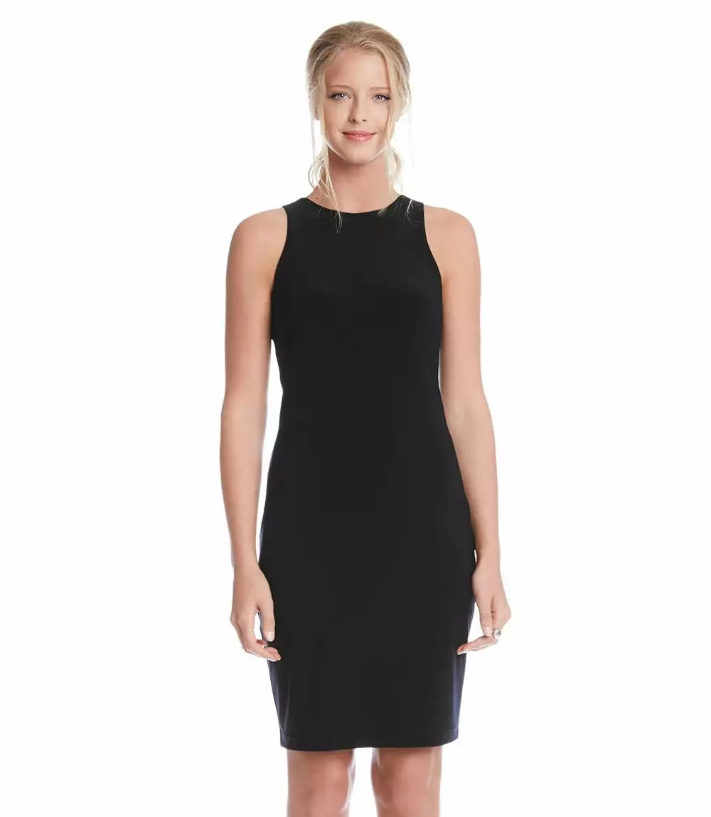 The Karen Kane Travel Collection is back in a brilliant new silhouette. This sheath dress is constructed in wrinkle resistant travel fabric. Both sturdy and stretchy, it will suppress and smooth while maintaining comfort. Roll it in a ball, throw it in your suitcase, take it out, pair with pumps and head to the office…it’s as simple as that.
