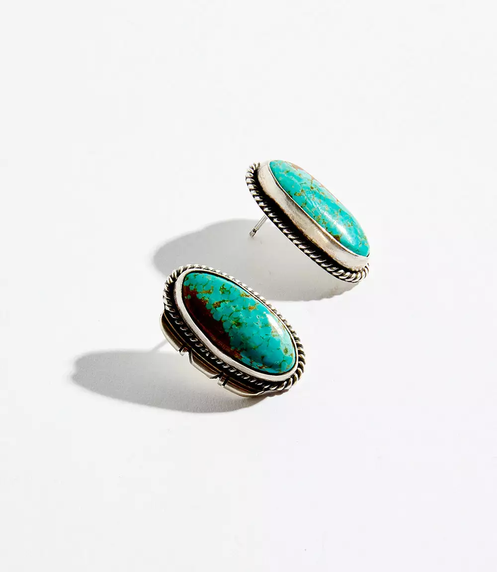 Stunning oval shaped turquoise stones center a pair of striking sterling-silver earrings.