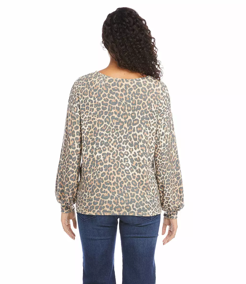 An animal-inspired top with blouson sleeves and a cinched twist-front waist. It’s cut from super soft knit for extra comfort.