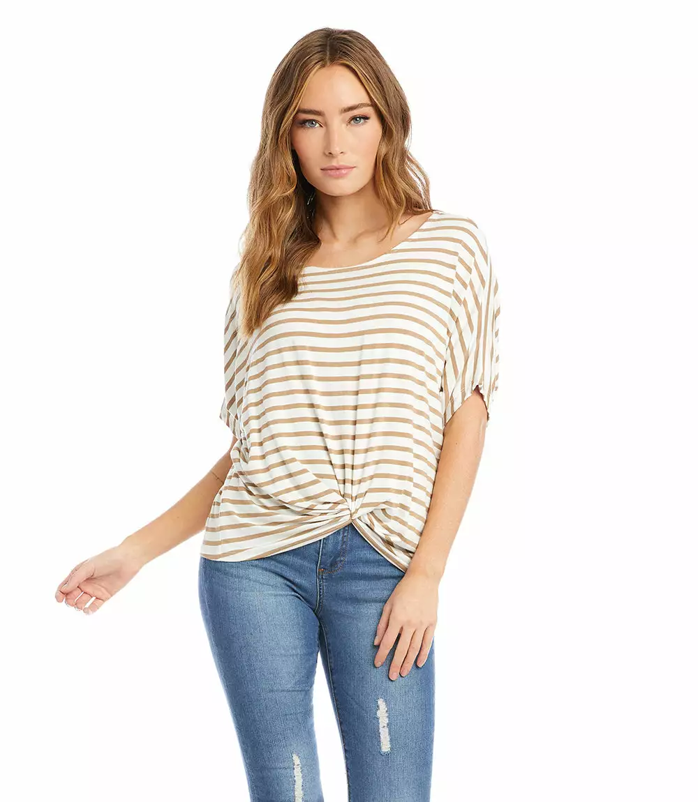 A playful knotted hemline adds stylish interest to this super-soft jersey-knit striped top. This top pairs perfectly with high-waisted jeans.