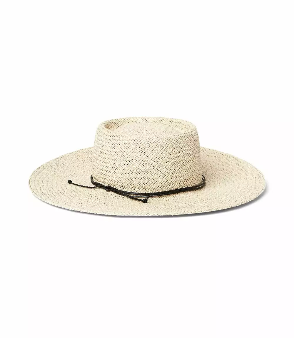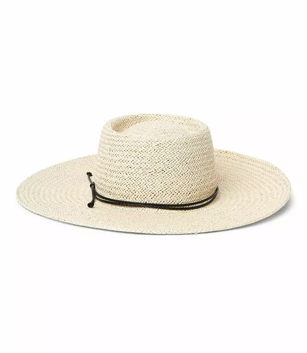 This timeless wide brim style hat is detailed with vegan leather trim for an effortlessly beachy finish.