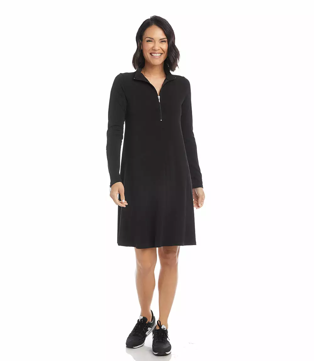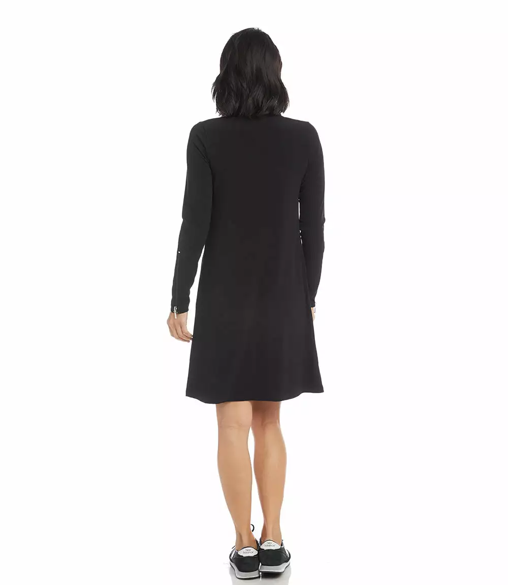 This jet-set ready dress is ideal for when you are on the go with its comfortable travel jersey-knit fabric. It features zippers at the sleeve and neckline for a versatile look.
