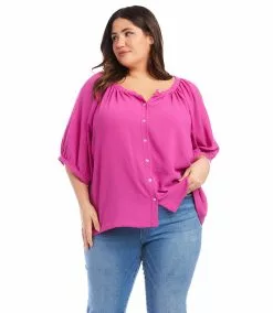 Karen Kane Plus Size Short Sleeve Peasant Top