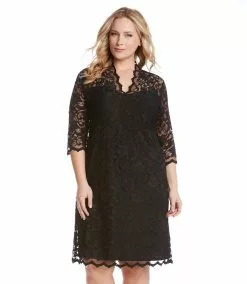 Karen Kane Plus Size V-Neck Scallop Lace Dress