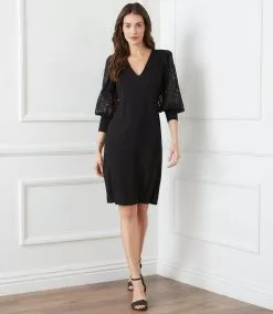 Karen Kane Petite Size Lace Sleeve Dress