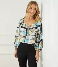 Karen Kane Plus Size Short Sleeve Peasant Top